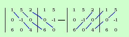 D = 1·(-1)·4 + 5·0·6 + 2·0·0 - 6·(-1)·2 - 0·0·1 - 4·0·5 = -4 + 0 + 0 + 12 - 0 - 0 = 8 Io ti ho scritto tutti i passaggi, naturalmente, una volta capito il meccanismo, i calcoli si possono abbreviare |