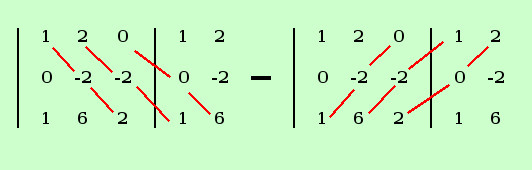 D = 1·(-2)·2 + 2·(-2)·1 + 0 - 0 - 6·(-2)·1 - 0 = -4 - 4 + 12 = 4 |