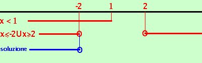 Adesso devo prendere le soluzioni sia del primo che del secondo sistema ed ottengo il risultato finale: le soluzioni della disequazione iniziale sono
