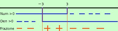 Siccome cerco dove la frazione e' maggiore di zero ho come risultato: -3 < x < 3 Risolvo la seconda