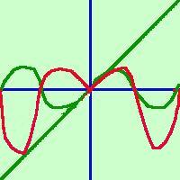 In verde le due funzioni componenti. In rosso la loro funzione prodotto. si potrebbe anche dire che la funzione y = x sen x e' una funzione pari perche' e' il prodotto di due funzioni dispari (meno per meno da' piu') sapresti dimostrare che il prodotto di due funzioni dispari e' una funzione pari? |