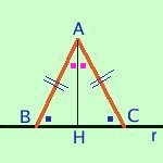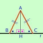 Per il secondo criterio i due triangoli sono congruenti ed in particolare sara' BH=CH ed anche gli angoli AHB=AHC che quindi saranno retti