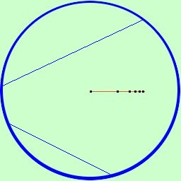 Per parlare di queste geometrie occorre andare a modificare il nostro conceto di piano: Il piano e' uno dei concetti primitivi, e non viene definito proprio perche' ognuno di noi dovrebbe averne il concetto preesistente nella sua mente; tu come l'immagini un piano? io l'immagino come un pavimento che si espanda da tutte le parti senza avere muri. Immagina di avere un altezza di 2 metri (cosi' puoi giocare a pallacanestro) e di stare in una stanza a 2 metri dal muro e fai un passo di un metro verso il muro, pero', per magia, ogni volta che fai un passo ti restringi e diventi esattamente la meta'