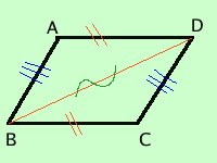 Quindi i due triangoli ABD e BCD sono congruenti per il terzo criterio di congruenza dei triangoli (tre lati) e quindi hanno congruenti tutti gli elementi; in particolare: essendo l'angolo ABD^ congruente all'angolo BDC^ ed essendo questi angoli alterni interni rispetto alle rette AB e CD tagliate dalla trasversale BD allora le due rette AB e CD saranno parallele