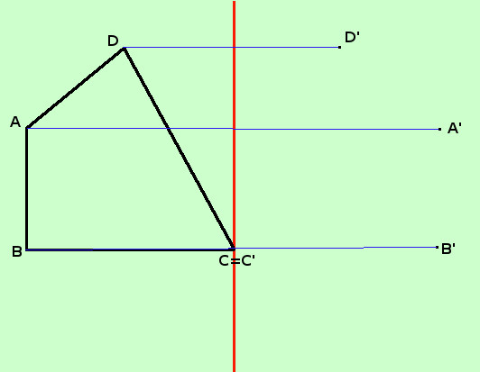 Ti faccio un esempio: supponiamo di voler ruotare il quadrilatero ABCD della figura seguente attorno ad un asse di rotazione verticale passante per il vertice C