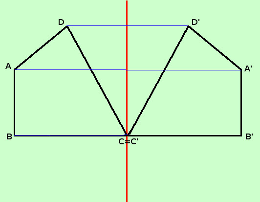 Chiamo il punto alla fine del segmento di perpendicolare con lo stesso nome ma con un apice Il punto C essendo sull'asse di rotazione, coincide con il punto corrispondente C'