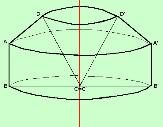 Molto intuitivamente possiamo dire che la figura che ottengo e' data da un cilindro ABB'A' sormontato da un tronco di cono DAA'D' e con un buco a forma di cono DCD'