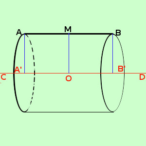 ![]() M e' il punto medio di AB O e' il punto di intersezione dell'asse del segmento AB con l'asse di rotazione CD In pratica in questo caso si tratta di un cilindro di altezza AB=A'B', in cui il raggio di rotazione corrisponde ad OM parte dell' asse del segmento AB compresa fra il segmento stesso e l'asse di rotazione CD, quindi abbiamo che vale la formula Area = 2π OM · A'B' |
