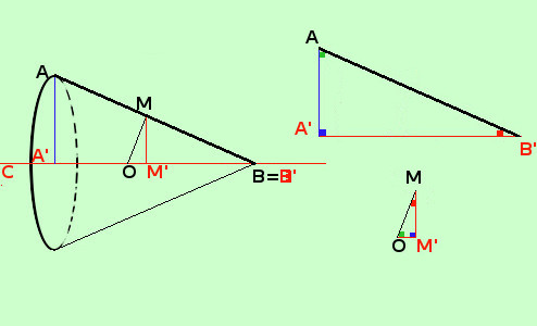 ![]() I triangoli considerati sono AA'B' e' simile a MOM' Li stacco per farteli vedere meglio e metto dentro gli angoli congruenti un quadratino con lo stesso colore Seguendo il metodo indicato negli esercizi sulla similitudine scriviamo A A' B' O M' M quindi posso scrivere la proporzione completa AA' : OM' = A'B' : M'M = AB' : OM e scegliere poi quella che mi interessa AB:MO= A'B':MM' ti ricordo che B e B' sono lo stesso punto |