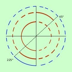 a destra la rappresentazione grafica; il punto 0° = 360° e' escluso