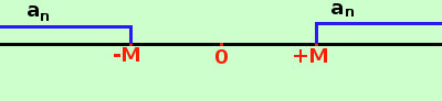 Quindi, se considero la retta reale devo considerare l'intervallo tale che i numeri positivi siano maggiori di M ed anche quello dove i numeri negativi sono minori di -MDi conseguenza devo considerare i valori indicati in figura con gli intervalli blu, cioe' an < -M e an > +M |