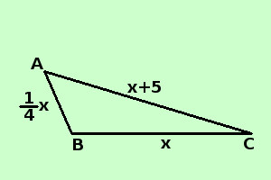 soluzione Risolvere il seguente problema Calcolare le misure dei 3 lati di un triangolo sapendo che un lato e' 1/4 della base , l'altro lato supera la base di cm 5 e il perimetro supera la base di 30 cm. ipotesi: un lato e' 1/4 della base l'altro lato supera la base di cm 5 il perimetro supera la base di 30 cm. tesi: Calcolare le misure dei 3 lati