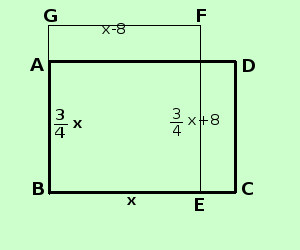 modifichiamo il problema come: l'area del rettangolo modificato e' superiore di 16 cm2 all'area del rettangolo iniziale GF · EF = BC·AB + 16 trovo i valori di GF ed EF GF = x - 8