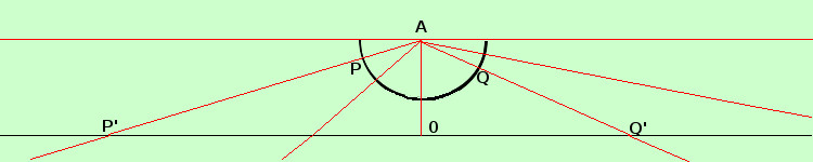 se ora considero un fascio di rette con centro nel centro A della semicirconferenza le rette che incontreranno un punto P della semicirconferenza incontreranno anche un punto P' della retta ℜ e, viceversa le rette che incontreranno un punto Q' della retta ℜ incontreranno anche un punto Q della semicirconferenza Quindi abbiamo una corrispondenza biunivoca fra i punti della semicirconferenza segmento e i punti della retta: ad ogni punto della semicirconferenza corrisponde un punto sulla retta e, viceversa, ad ogni punto della retta corrisponde un punto della semicirconferenza; quindi retta e semicirconferenza hanno lo stesso numero di punti Naturalmente avere lo stesso numero di punti nel caso di insiemi infiniti non ha molto significato: ricordati che ∞ e' solo una convenzione Da notare che la retta passante per gli estremi 1 della semicirconferenza e' la parallela alla retta ℜ e possiamo dire che la incontra all'infinito (diremo che due rette parallele hanno in comune un punto all'infinito) Da notare anche che alla parallela corrisponde sia il valore +∞ che il valore ∞ che qui vengono considerati assieme come un unico punto |
