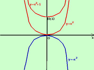 Curva in rosso E' la funzione parabola con vertice nell'origine degli assi: Passa per l'origine degli assi perche' non ha il termine noto Se ho: y = x2 + 1 la curva viene spostata di 1 verso l'alto di 1 y = -x2 se il termine al quadrato e' negativo (curva in blu) la concavita' e' rivolta verso il basso Se la funzione e' del tipo y = ax2 + bx + c con a, b e c costanti allora e' una parabola con asse parallelo all'asse delle y, passante per il punto (0;c) con vertice nel piano nel punto