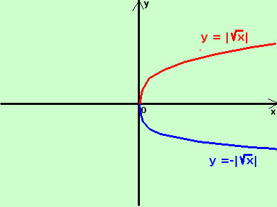 e' l'espressione "parabola rovesciata elevando a quadrato ottengo l'espressione y2 = x che puoi disegnare come y = x2 e poi scambiare fra loro gli assi x ed y, Se vuoi utilizzarla come funzione devi considerare il solo ramo superiore quindi avere il radicale sempre positivo (utilizzo il modulo per poterlo fare) y = |√x| siccome la radice e' definita solamente per valori positivi o nulli del radicando la curva compare nel punto x=0 dove y vale 0, ed aumenta man mano che le x aumentano |