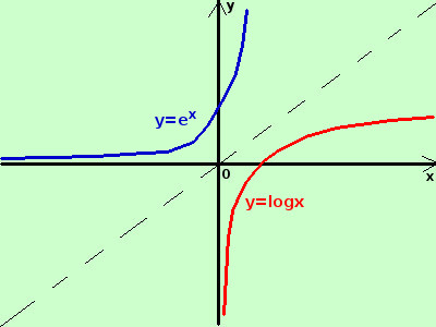 per trovarne l'inversa scambio tra loro x ed y x = log y porto i termini con la y prima dell'uguale - log y = - x cambio di segno log y = log x per ricavare la y elevo all'asponenziale da entrambe le parti dell'uguale elogy = ex esponenziale e logaritmo si elidono ed ottengo y = ex il suo dominio e' tutto ℜ D = {x ∈ ℜ} |