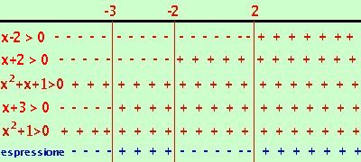 Nota che avrei potuto tralasciare i due fattori con delta minore di zero perche',essendo positivi, non influiscono sul segno del risultato