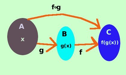 Consideriamo le funzioni g : A -> B f : B -> C chiameremo funzione composta l'applicazione da A a C fog : A -> C tale che fog(x)= f(g(x)) Non ti spaventare: significa che al posto della x nella prima funzione metti l'espressione della seconda funzione: esempio f(x) = 2x2 + 3 g(x) = sen x al posto di x in f(x) metto sen x fog(x)= 2(sen x)2 + 3 fog(x)= 2sen2x + 3 Vediamo alcuni semplici esempi su come costruire delle funzioni composte |