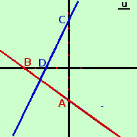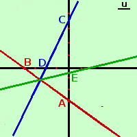 Disegniamo infine la rettax(5√3-6) - 13y + 10√3-24 = 0 Mi basta trovare un punto, perche', essendo la bisettrice, passa certamente per il punto comune alle due rette trovate sostituisco ad x il valore 0 per trovare y per x = 0 ottengo - 13y + 10√3-24 = 0 y=(10√3-24)/13 quindi ho il punto E≡[0; (10√3-24]/13) per metterlo in grafico (10√3-24)/13 vale circa -0,5 Traccio (in verde) la retta passante per il punto trovato e per il punto comune alle due rette |