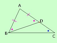 ![]() questo ci permette di costruire un triangolo isoscele cogiungendo i punti B e D Infatti il triangolo ABD e' isoscele e quindi ha gli angoli ABD^ e BDA^ congruenti ![]() Se ora consideriamo il triangolo BCD l'angolo BDA^ e' esterno mentre l'angolo BCD^ e' interno e non adiacente quindi BDA^ > BCD^ Raccogliendo ABC^> ABD^= BDA^> BCA^ Per la proprieta' transitiva segue ABC^> BCA^ o, leggendo alla rovescia BCA^< ABC^ come volevamo |