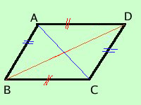Anche i triangoli ABC e ACD sono congruenti per ipotesi e quindi hanno congruenti tutti gli elementiin particolare AB=CD ed AD=BC ma questi essendo lati opposti congruenti di un quadrilatero ne segue che il quadrilatero e' un parallelogramma (come abbiamo gia' dimostrato) Avendo dimostrato sia il teorema diretto che quello inverso i due fatti, parallelogramma e lati opposti congruenti, saranno equivalenti |
