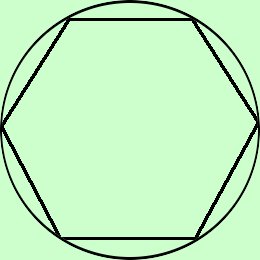 In questo caso i raggi dei cerchi coincidono con i lati dei triangoli congruenti in cui possiamo suddividere i vari poligoni regolari congiungendo il centro del cerchio circoscritto con i vertici dei poligoni Inoltre avremo che All'aumentare del numero dei lati la misura del perimetro di un poligono regolare inscritto in una circonferenza aumenta avvicinandosi alla misura della lunghezza della circonferenza stessa