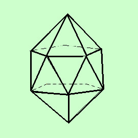 Ora poniamo sui lati del pentagono 5 triangoli equilateri facendo confluire le punte libere in un solo punto ed otteniamo l' Icosaedro regolare