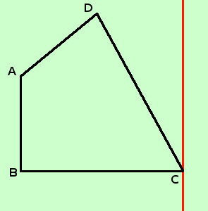 Ti faccio un esempio: supponiamo di voler ruotare il quadrilatero ABCD della figura seguente attorno ad un asse di rotazione verticale passante per il vertice C