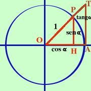 E' una relazione fra il seno ed il coseno con la tangenteConsideriamo una circonferenza trigonometrica (cioe' di raggio 1) e su di essa prendiamo un punto P cui corrisponda l'angolo alfa Consideriamo la tangente corrispondente AT I triangoli OAT ed OHP sono simili per il primo criterio di similitudine (2 angoli uguali: uno in comune e l'altro retto) quindi posso scrivere la proporzione tang cos |