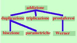 Sono operazioni definite da varie formule in relazione fra loro: le prime, un po' piu' laboriose da dimostrare sono le formule di addizione. Da esse vengono ricavate tutte le altre secondo lo schema esposto qui sotto