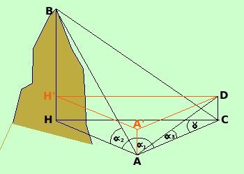 ![]() Se la base di riferimento AD non e' orizzontale prima calcolo una base di riferimento orizzontale AC con il teorema delle proiezioni: AC = AD cos poi lo adatto alla formula precedente