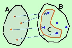 Siccome nella definizione di funzione esauriamo l'insieme A ma non e' detto che esauriamo l'insieme B diventa importante definire quanta parte dell'insieme B entri a far parte dell'applicazione