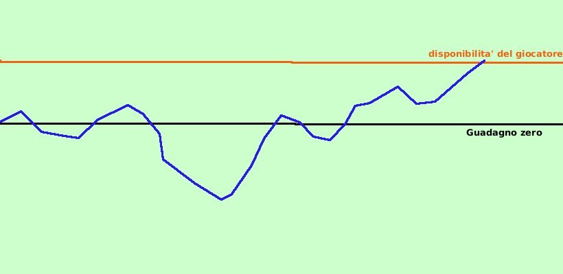 Ancora peggio sara' per il giocatore nel gioco organizzato in quanto il guadagno costante del banco rende la retta "guadagno zero" inclinata (l'inclinazione della retta "guadagno zero" per il giocatore sara' tanto maggiore quanto maggiore e' la percentuale di guadagno del banco)