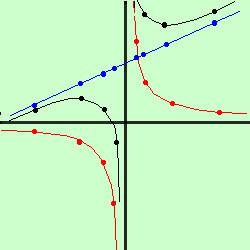 grafico della funzione y = 2/x + 3 + 1/2 x