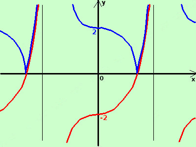 sviluppo Data la seguente funzione costruitene approssimativamente il grafico y = |tangx - 2| ![]() considero la funzione senza modulo y = tangx - 2 e' la funzione tangente abbassata di due unita' in verticale E' piuttosto complicato trovare le intersezioni con l'asse delle x (dovrei risolvere l'equazione tangx=2); quindi procediamo senza definirle Ha il flesso nei punti (0±kπ; -2) Disegno la curva (in rosso) ruotando attorno all'asse x perpendicolarmente al piano cartesiano ribalto la parte sotto l'asse x sopra l'asse stesso in blu il risultato finale |