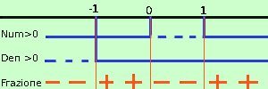 Se hai bisogno di un ripasso Numeratore: x2 - x > 0 Calcoli Denominatore: x + 1 >0 ottengo Numeratore positivo: x < 0 V x > 1 Denominatore positivo: x > -1 Faccio il grafico Indico i valori positivi con una linea continua ed indico i negativi con una linea tratteggiata: Per sapere il segno della frazione controllo i segni con la regola del prodotto (la regola dei segni e' la stessa per il prodotto ed il quoziente) ![]() Siccome cerco dove la frazione e' maggiore di zero ho come risultato: -1 < x < 0 V x > 1 Risolvo la seconda