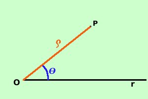 Il problema di un sistema di coordinate e' sempre lo stsso: in che modo si puo' individuare esattamente la posizione di un punto nel piano? Abbiamo visto il sistema di coordinate cartesiane nel piano che mediante le proiezioni su due assi individua i punti del piano stesso. Vediamo ora un altro sistema di coordinate in cui un punto e' individuato da un segmento e da un angolo ![]() Allora, dato un qualunque punto P la sua posizione e' determinata dalla distanza PO = ![]() ![]() P ![]() ![]() ![]() Il primo numero puoi pensarlo come il raggio di una circonferenza di centro O ed il secondo come l'angolo che deve "spazzare" il raggio, partendo dalla semiretta, per arrivare al punto P Il sistema di coordinate polari sara' molto utile da utilizzare, oltre che su circonferenze e sfere, in tutti quei problemi dove intervengono fenomeni rotatori o comunque legati a numeri immaginari |