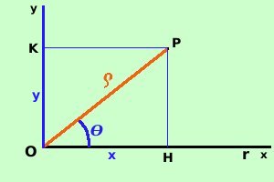 Vediamo subito come e' possibile trasformare le coordinate cartesiane ortogonali coordinate polari per trovare le corrispondenti coordinate polari ![]() Dal punto P mando le proiezioni sugli assi x e y ed ottengo i punti H e K. Ottengo quindi, utilizzando i teoremi della trigonometria sui triangoli rettangoli OH = x = ![]() ![]() OK = PH = y = ![]() ![]() Come vedi e' lo stesso meccanismo che ci porta a rappresentare un numero complesso nel suo piano (vedi pagine precedenti) Come esercizio prendiamo l'equazione della circonferenza unitaria di raggio 1 in un sistema di coordinate cartesiane e trasformiamola nell'equazione di una circonferenza in un sistema di coordinate polari equazione; x2 + y2 = 1 applico la trasformazione x = ![]() ![]() y = ![]() ![]() ottengo ![]() ![]() ![]() ![]() ![]() ![]() ![]() e per la prima relazione fondamentale della trigonometria ![]() |