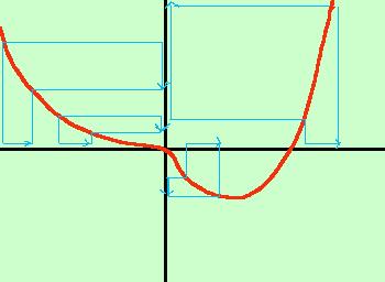 A noi serve qualcosa che ci permetta di vedere la funzione nella sua interezza e quel qualcosa sara' la derivata; Immaginate ![]() Vedro' che il punto sull'asse y va piu' veloce o meno veloce a seconda della pendenza della funzione: se osservi la figura a fianco vedi che a frecce uguali sull'asse x corrispondono frecce diverse sull'asse y e questo e' dovuto alla velocita' con cui si aggregano i punti sulla y rispetto ai punti sulla x Prima la funzione (il punto sull'asse y corrispondente alla x) scende rapidamente poi man mano rallenta di velocita' fino a fermarsi dove c'e' il minimo e quindi cambia direzione e prende velocita' salendo verso l'alto Se ora noi riusciamo ad esprimere come varia di velocita' il punto sulla y al variare di x in modo regolare avremo un qualcosa che ci permettera' di vedere la funzione tutta intera e non solo una piccola parte come nel caso del limite. Ora si tratta di esprimere matematicamente questo concetto: Come varia il punto sull'asse y quando il punto sull'asse x si sposta regolarmente? Se non ti e' troppo chiaro forse puo' aiutarti guardare questa nota sulla rappresentazione di una funzione |