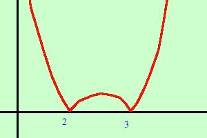 ![]() y = | x2 - 5x + 6 | Tra i punti angolosi distinguiamo le cuspidi ove le tangenti destre e sinistre hanno coefficiente angolare una piu' e l'altra meno infinito: ![]() ![]() Per determinare la curva nei punti angolosi basta determinarne le tangenti, con la nota formula y - y0 = f '(x0)·(x - x0) trovando la derivata destra e sinistra e calcolandone il valore per x0 |