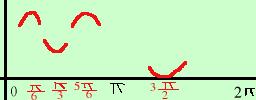 nei punti A , B , C , D potrei avere un massimo, un minimo o un flesso orizzontale Per sapere se e' un massimo, un minimo o un flesso conviene studiare la derivata prima: Pongo la derivata prima maggiore di zero 2cosx(1 - 2senx) > 0 Equivale a dire che esplicitando i due fattori e ponendoli maggiori di zero 2cosx > 0 1 - 2senx > 0 la funzione sara' positiva dove i due fattori hanno segni concordi. se hai bisogno di aiuto per risolvere le disequazioni 2cosx > 0 0 + + + + + + + + + ![]() ![]() ![]() 1 - 2senx < 0 0 + + + + ![]() ![]() ![]() y ' + - + - + y ![]() ![]() ![]() ![]() ![]() ![]() A( ![]() ![]() B( ![]() ![]() C(5 ![]() ![]() D(3 ![]() ![]() |