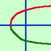1) sotto radice abbiamo un polinomio di primo grado si tratta di una parabola rovesciata con asse sull'asse delle x, in tal caso basta considerare solamente il ramo superiore della parabola stessa. Facciamo un esempio, consideriamo y = ![]() se elevassi al quadrato da entrambe le parti otterrei y2 = x + 1 ![]() x = y2 - 1 Nella figura a fianco devi considerare solo il ramo rosso della parabola perche' la radice si suppone positiva 2)sotto la radice abbiamo un polinomio di secondo grado si tratta di una circonferenza con centro sull'asse delle x, in tal caso basta considerare solamente la parte superiore della circonfernza stessa. Facciamo un semplice esempio, consideriamo y = ![]() se elevassi al quadrato da entrambe le parti otterrei y2 = 1 - x2 ![]() x2 + y2 = 1 Nella figura a fianco devi considerare solo il ramo rosso della circonferenza perche' la radice si suppone positiva Se il polinomio sotto radice e' di grado superiore a due, a seconda del tipo di polinomio puo' essere conveniente estrarre di radice oppure fare lo studio completo di funzione: devi decidere caso per caso |
