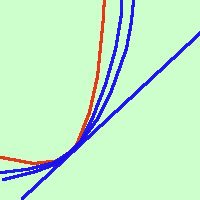 Se considero una funzione e la sua derivata prima abbiamo gia' visto la relazione ![]() o meglio y = f '(x0)·( x - x0)+ y0 Questo significa che con la derivata prima posso approssimare la curva in un punto con una retta (la tangente) Intuitivamente possiamo dire che la curva e la tangente hanno due punti (coincidenti) comuni ![]() se consideriamo oltre la derivata prima anche la derivata seconda otterremo una curva del secondo ordine (parabola) che ha tre punti comuni con la curva in esame (parabola osculatrice) e quindi otterremo un'approssimazione migliore ![]() Quindi piu' derivate successive prendero' meglio approssimero' la curva, e posso procedere fino ad approssimare la curva quanto voglio. peccato che il metodo serva solo a livello locale, cioe' in un intorno abbastanza ristretto del punto considerato, ma vedremo che dara' luogo a parecchie conclusioni interessanti |