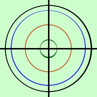 Quando il parametro si trova solamente nel termine noto allora avremo un fascio di circonferenze concentriche L'equazione di un fascio di circonferenze concentriche si puo' ridurre a x2 + y2 + ax + by + k = 0 Infatti al variare di k varia il raggio della circonferenza mentre non variano le coordinate del centro Notiamo che, dividendo i termini con parametro da quelli senza parametro il fascio ha una sola circonferenza di base, mentre l'altra e' rappresentata da una costante. L'asse radicale stavolta si riduce ad un punto: il centro della circonferenza di base ![]() x2 + y2 + k = 0 Che possiamo anche scrivere x2 + y2 = r2 Essendo r il raggio della circonferenza Da notare, nella prima equazione, che, per la realta' della circonferenza (condizione sul raggio), il termine k puo' assumere solamente valori negativi (-oo<k<0) |