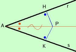 Dimostrazione Dal punto P traccio le perpendicolari PH e PK alle rette r ed s A Se il punto P e' il punto medio del segmento allora ha la stessa distanza dagli estremi del segmento e considero i due triangoli rettangoli PAH e PAK; essi hanno: ![]()