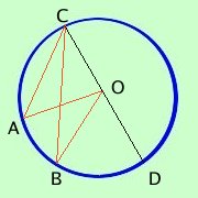 Talvolta, o per far capire meglio l'alunno che ha qualche difficolta' o per costringere a ragionare l'alunno piu' "secchione", il docente presenta la figura dell'angolo al centro ed alla circonferenza in modo alternativo; vediamo in questa pagina quali casi si possono presentare ![]() 1 per l'alunno con qualche difficolta' conviene presentare il teorema in modo semplificato considerando un lato dell'angolo alla circonferenza coincidente con il diametro in questo modo non c'e' bisogno di suddividere la dimostrazione in due parti ![]() 2 per l'alunno piu' preparato presentando la figura come qui a lato (si deve dimostrare che AOB^= 2ACB^) si costringe l'alunno a ragionare ed a costruire una figura che faccia riferimento alla differenza fra gli angoli invece che alla somma ![]() a sinistra vedi come costruire la figura: considera il diametro passante per C ed O; l'angolo che avevi e' ora la differenza fra due angoli AOB^= AOD^- BOD^ e devi considerare i triangoli AOC e BOC |