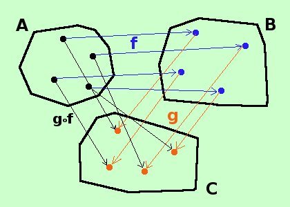 Consideriamo un'applicazione f da A a B e poi un'altra applicazione g da B a C; allora se considero un'applicazione da A a C equivalente alle due applicazioni considerate (nel senso che fa corrispondere gli stessi elementi), essa sara' la loro composizione