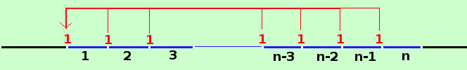 Consideriamo la rata fissa dell'importo di 1 €; per qualunque altro importo bastera' poi moltiplicare tale importo per il nostro risultato Consideriamo sulla retta dei tempi una rendita immediata anticipata di rata 1 € e di durata n anni ![]() i numeri sotto la retta indicano i periodi: essendo la rendita anticipata la rata e' pagata all'inizio del periodo Il primo euro sara' versato all'inizio del primo periodo e e avra' valore 1€ = 1 Il secondo euro sara' versato all'inizio del secondo periodo e dovra' essere spostato indietro nel tempo per per 1 periodo quindi avra' valore 1·(1+i)-1€ = v Il terzo euro sara' versato all'inizio del terzo periodo e dovra' essere spostato indietro nel tempo per 2 periodi quindi avra' valore 1·(1+i)-2€ = v2 ............................... ............................... Il quartultimo euro sara' versato all'inizio del quartultimo periodo e dovra' essere spostato indietro nel tempo per n-4 periodi quindi avra' valore 1·(1+i)-(n-4)€ = vn-4 Il terzultimo euro sara' versato all'inizio del terzultimo periodo e dovra' essere spostato indietro nel tempo per n-3 periodi quindi avra' valore 1·(1+i)-(n-3)€ = vn-3 Il penultimo euro sara' versato all'inizio del penultimo periodo e dovra' essere spostato indietro nel tempo per n-2 periodi quindi avra' valore 1·(1+i)-(n-2)€ = vn-2 L'ultimo euro sara' versato all'inizio dell'ultimo periodo e dovra' essere spostato indietro nel tempo per n-1 periodi quindi avra' valore 1·(1+i)-(n-1)€ = vn-1 per semplificare alla fine ho sottointeso gli € Raccogliendo per calcolare il montante dovremo eseguire la somma ![]() Si vede ora che si tratta di una progressione geometrica di n termini di ragione u e quindi, applicando la formula della somma Essendo la ragione v minore di 1 utilizzo la seconda formula
