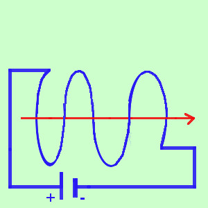 ![]() ![]() se ora prendo piu' spire (bobina elettrica) allora il campo aumenta e l'effetto calamita pure Osservazione: un'applicazione e' l'elettrocalamita che si ottiene mettendo al centro del solenoide una sbarra di ferro dolce: al passaggio della corrente il ferro aumenta l'effetto del solenoide e diventa una calmita attirando oggetti metallici. Staccando la corrente il ferro si smagnetizza tornando neutro |